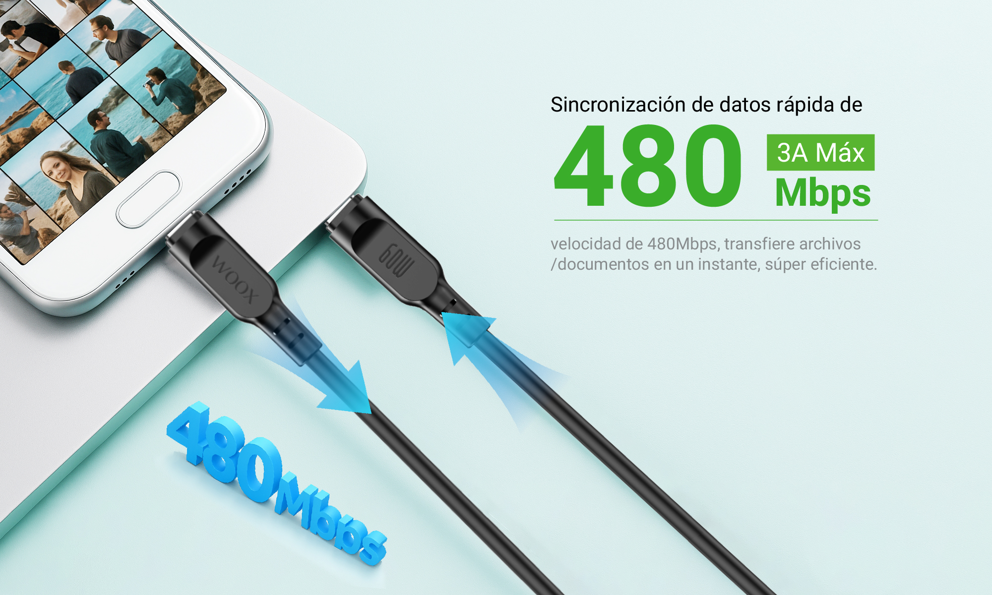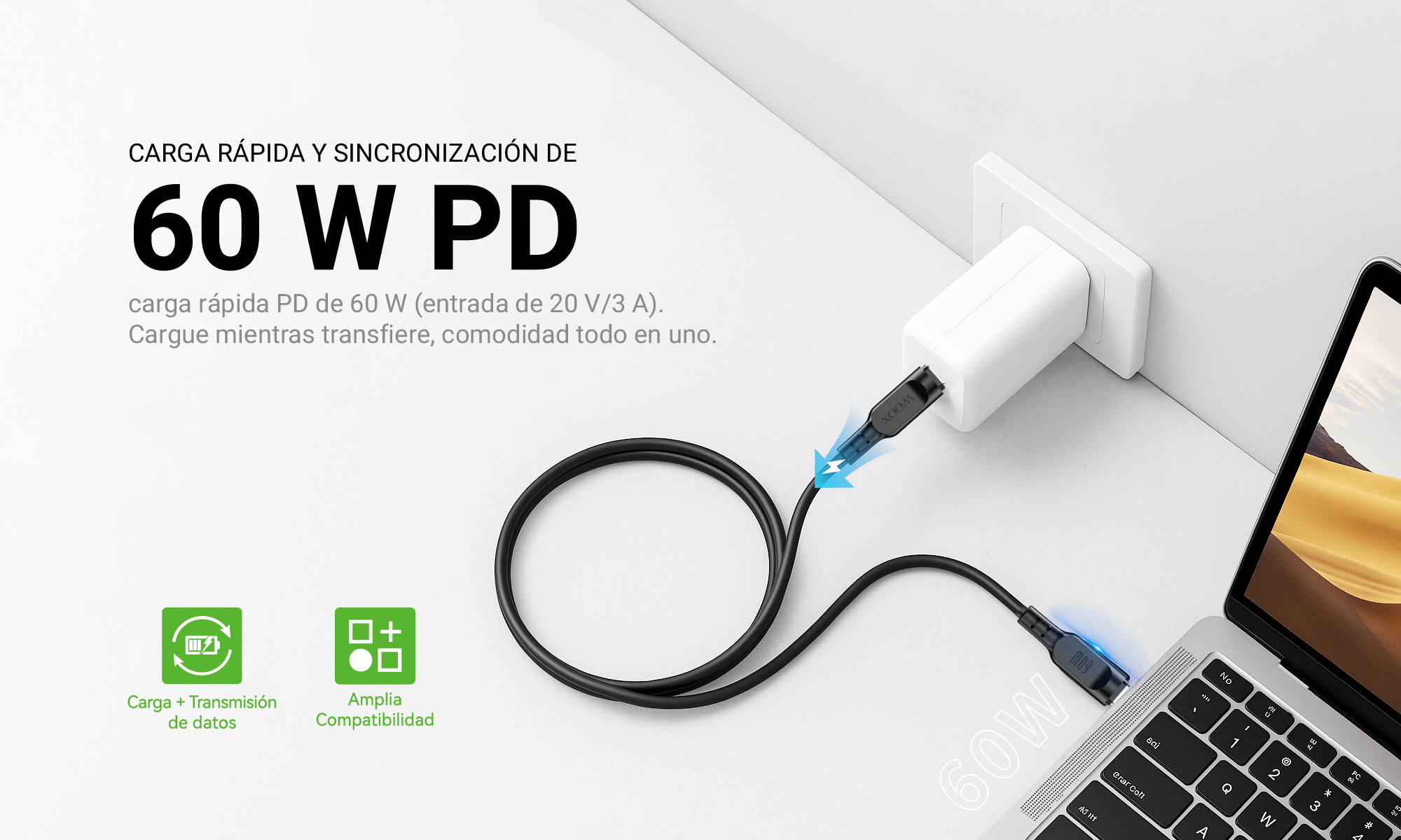Cable de datos MX0020 Tipo-C a Tipo-C 60W