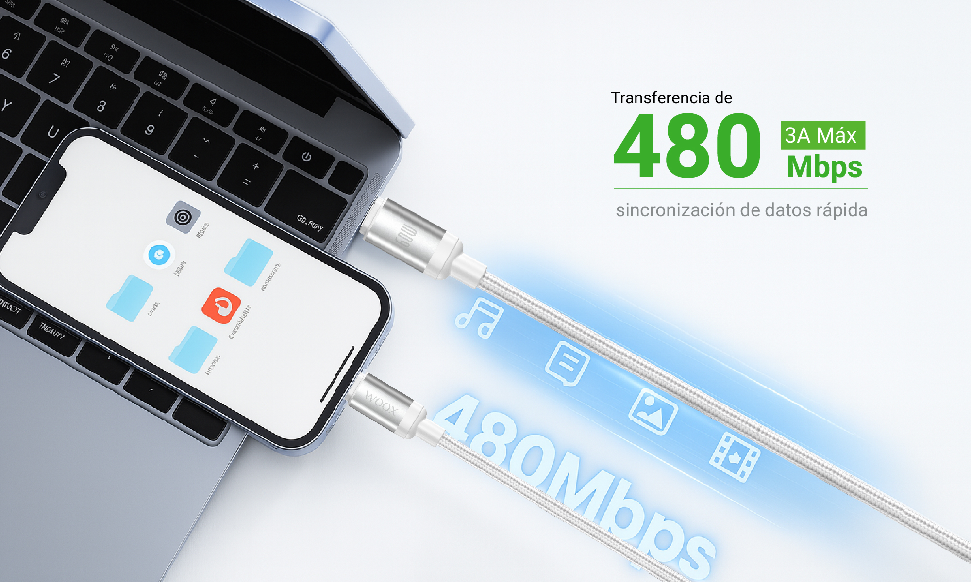 Cable de datos MX0027 Tipo-C a Tipo-C 60W