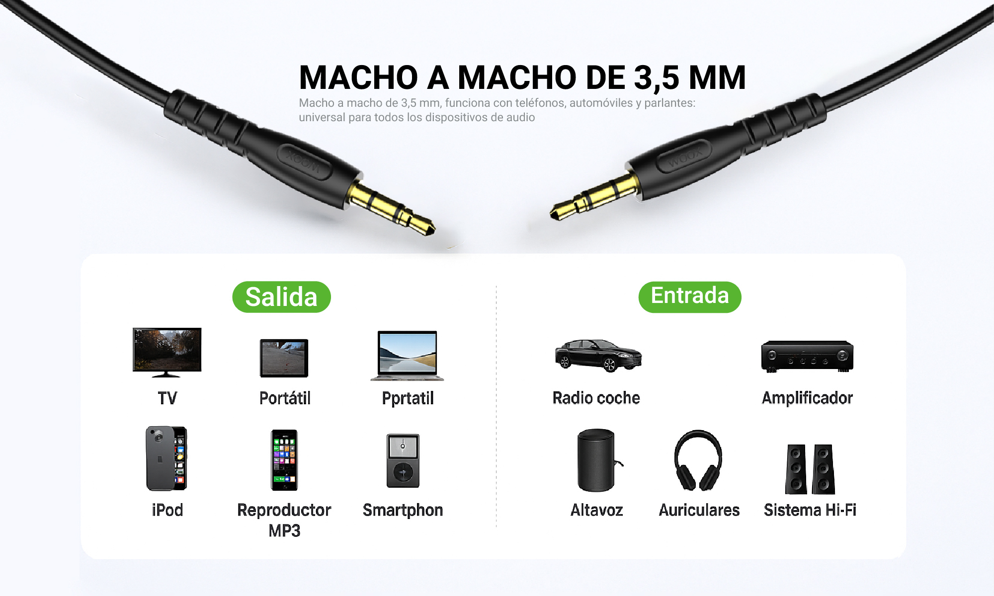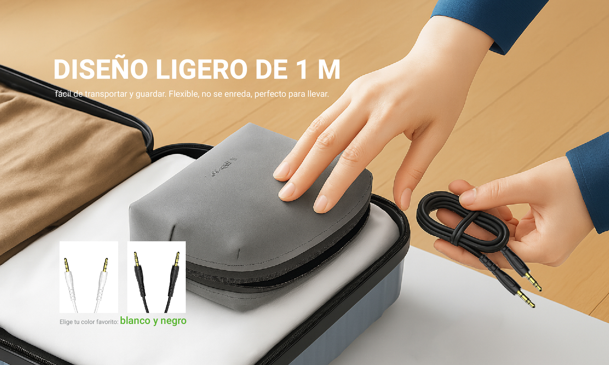 Cable de Audio MX0040 3.5mm Aux a 3.5mm Aux 1m-Blanco