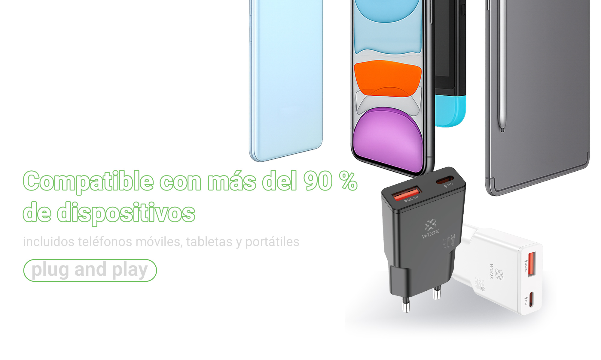Cargador de pared UE QC+PD GaN MX0085 30 W