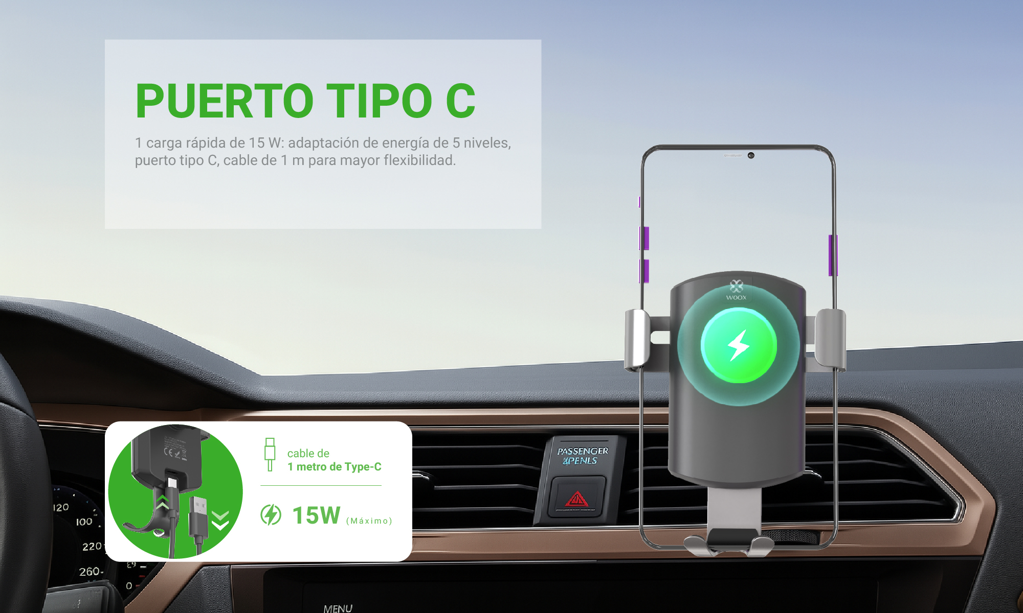Cargador inalámbrico para coche MX0059 15 W Tipo C (negro)