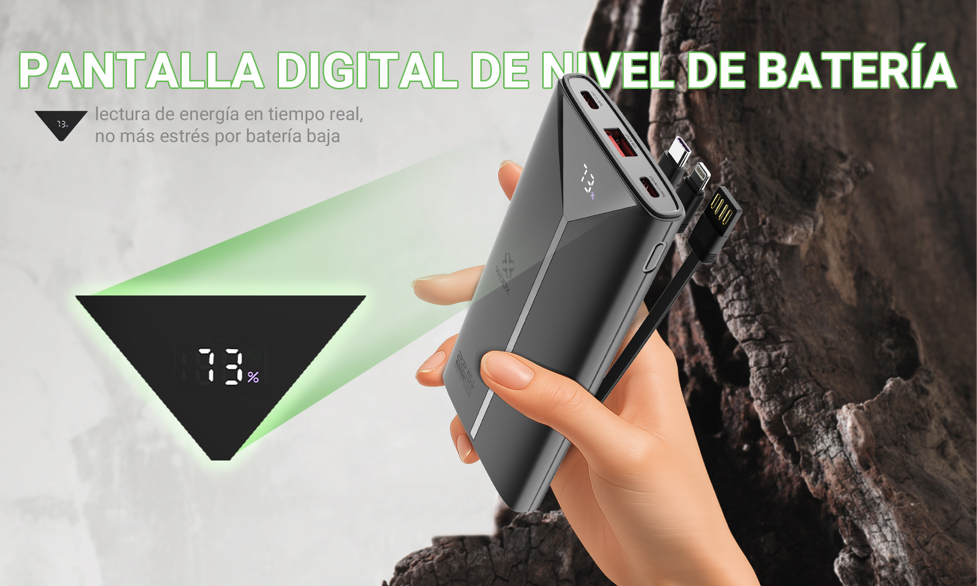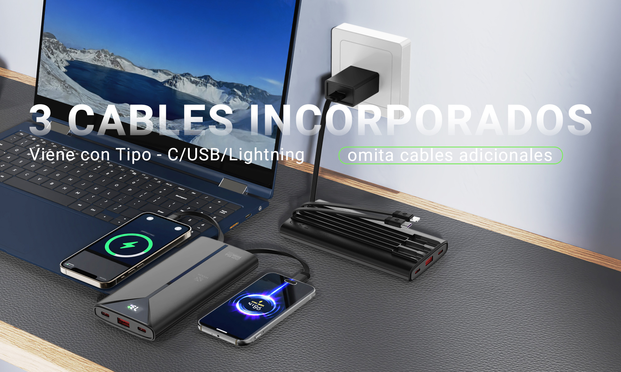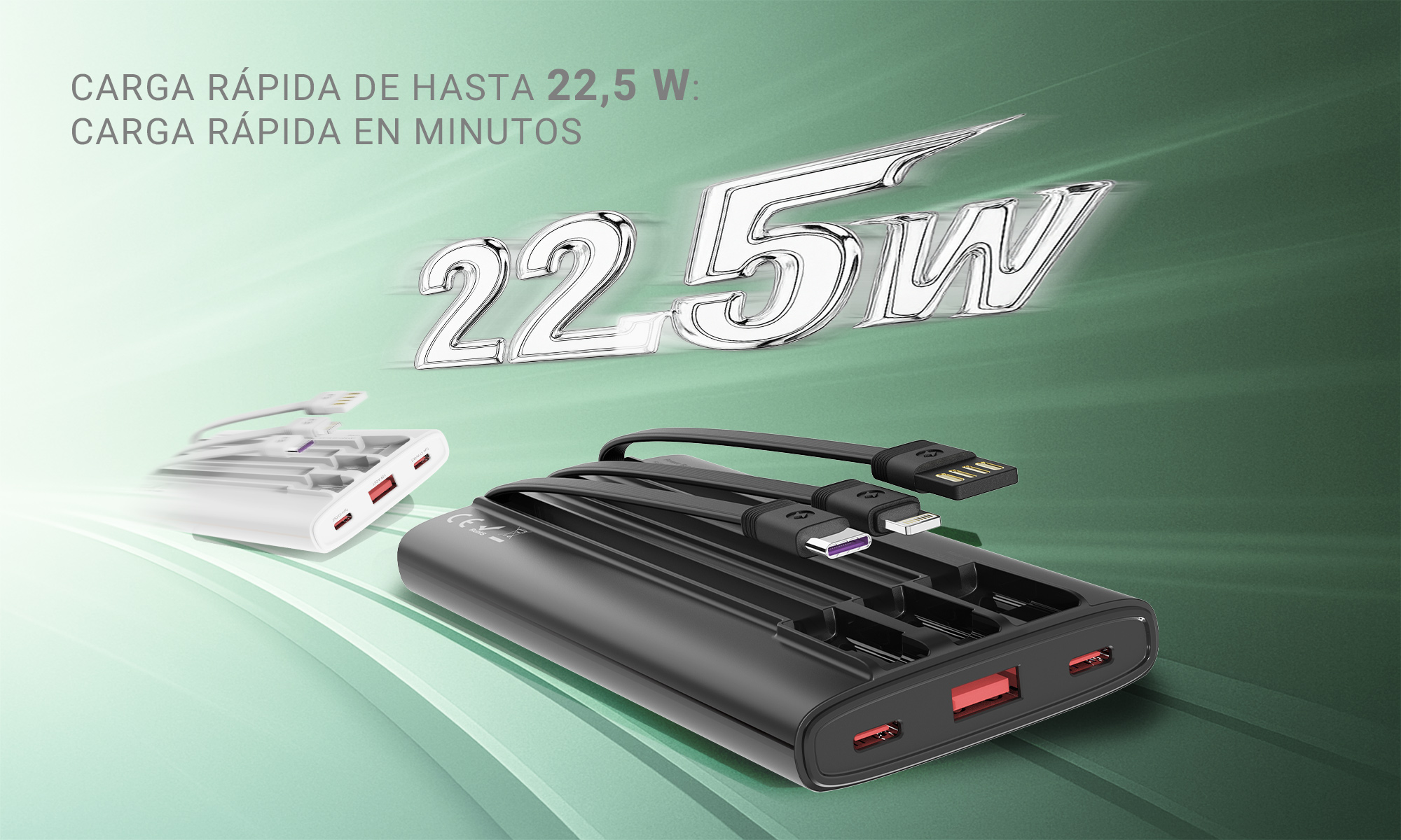 Banco de energía MX0131 10000 mAh 22,5 W con 3 cables ABS+PC-blanco