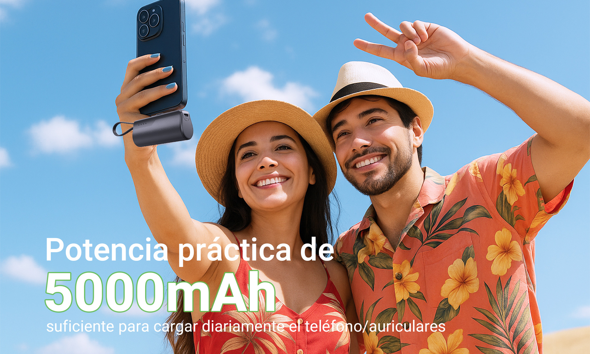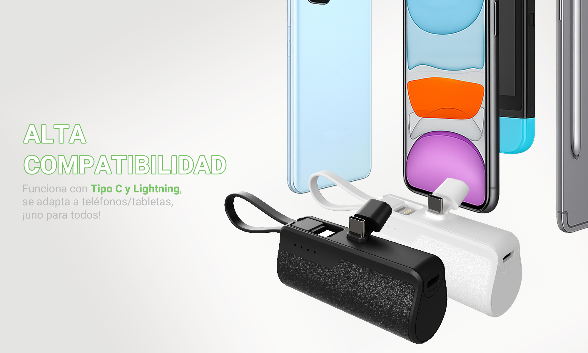 Banco de energía MX0138 5000 mAh 5 V 2 A con cable IP y adaptador tipo C ABS + PC (blanco)