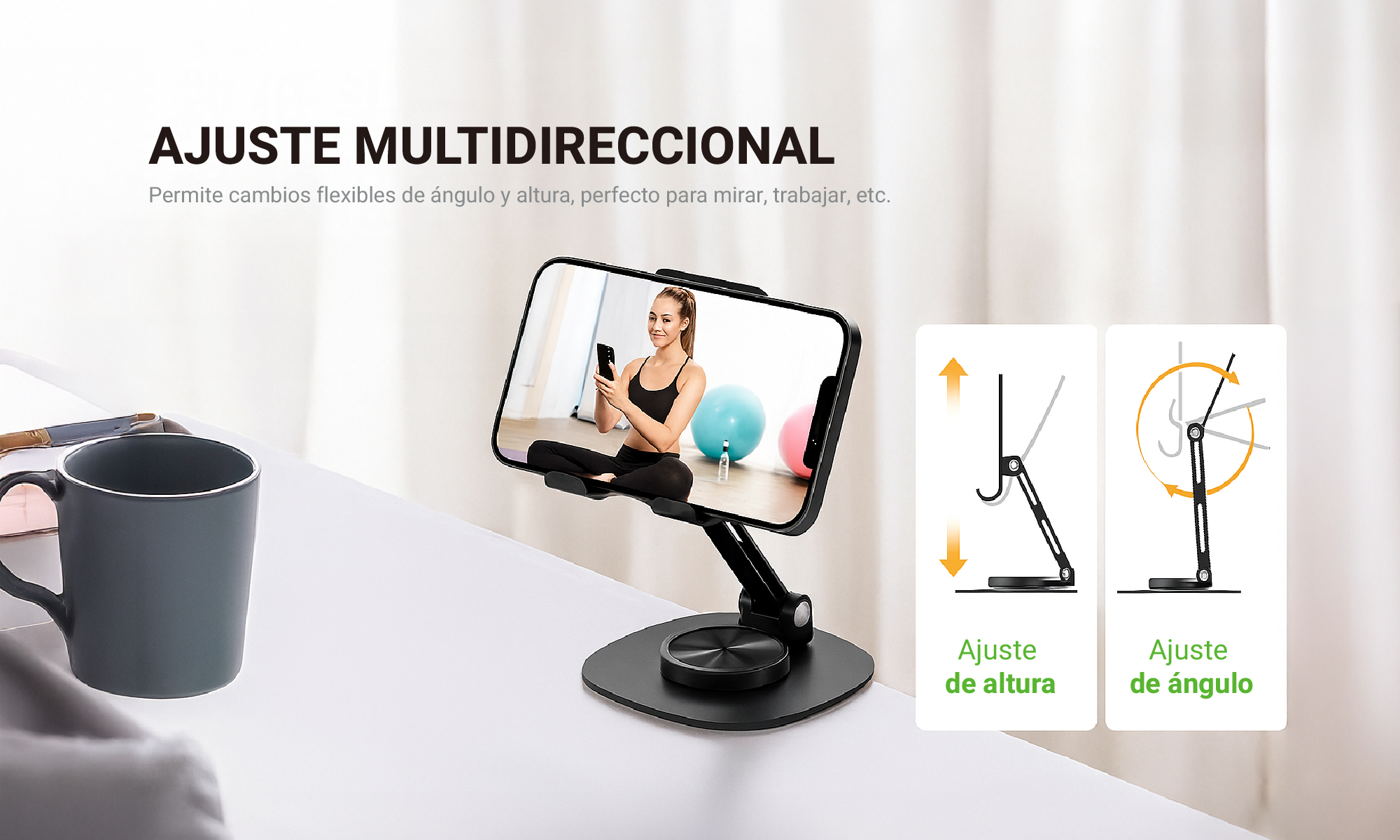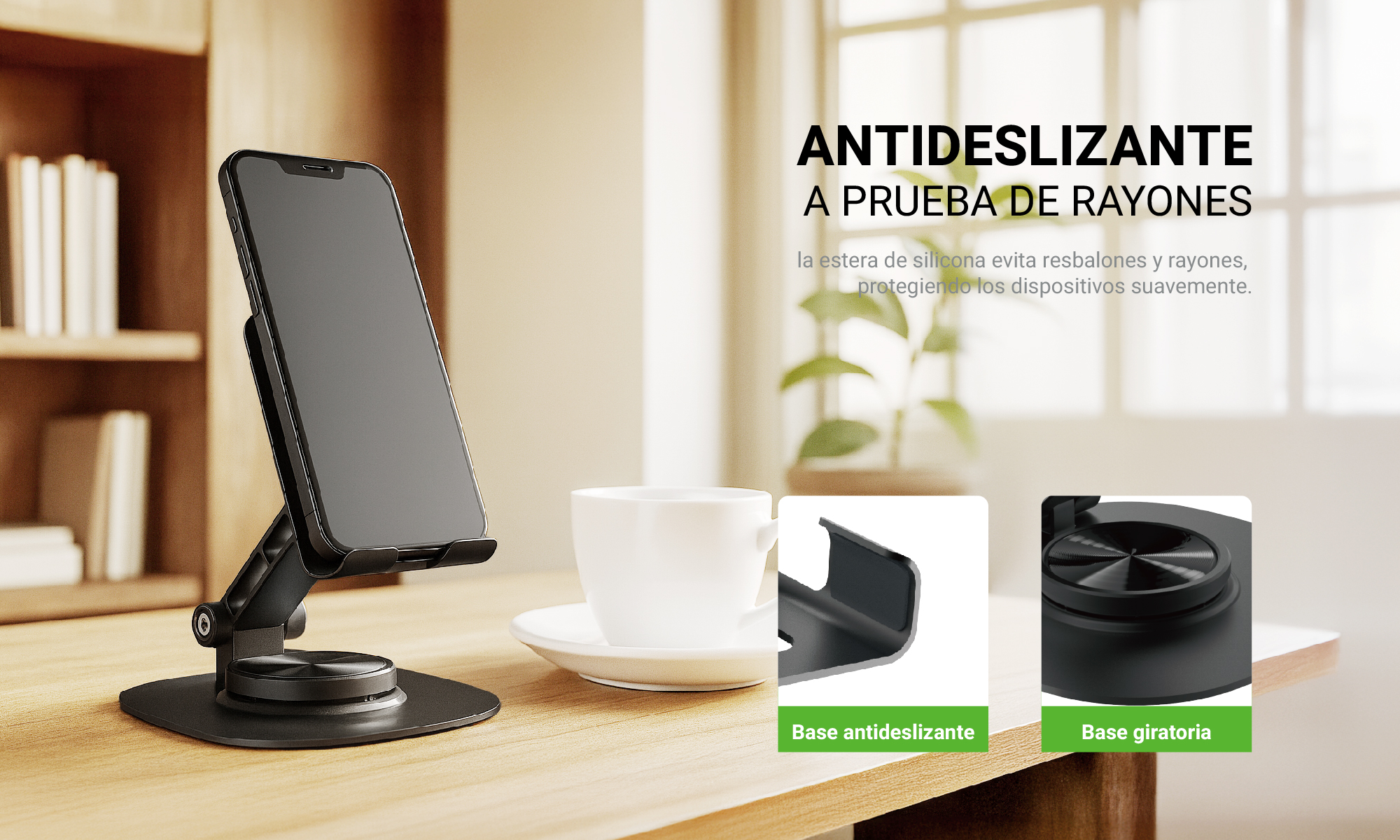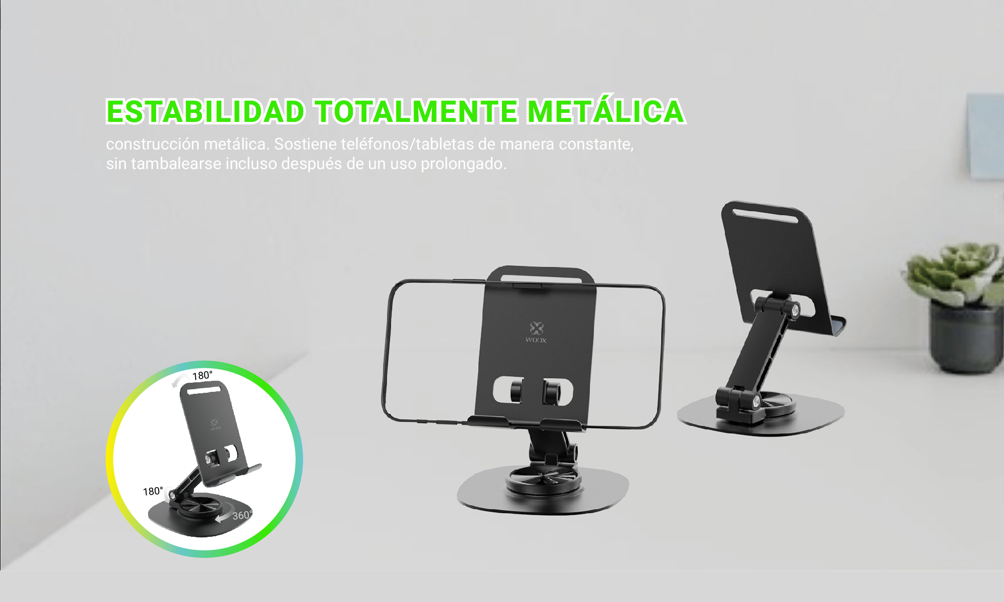 Soporte para teléfono de escritorio MX0160 con ajuste de 360 grados, metal, negro