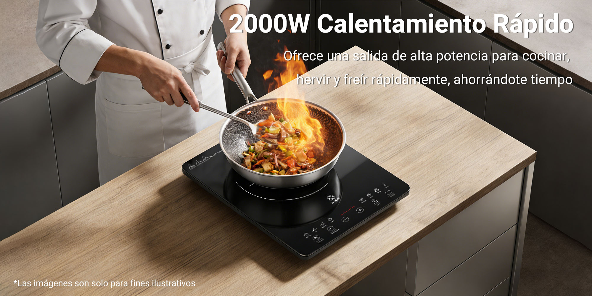 Placa de inducción MX0237 2000W, 8 niveles de temperatura y potencia, cable de 1,5 m - negro