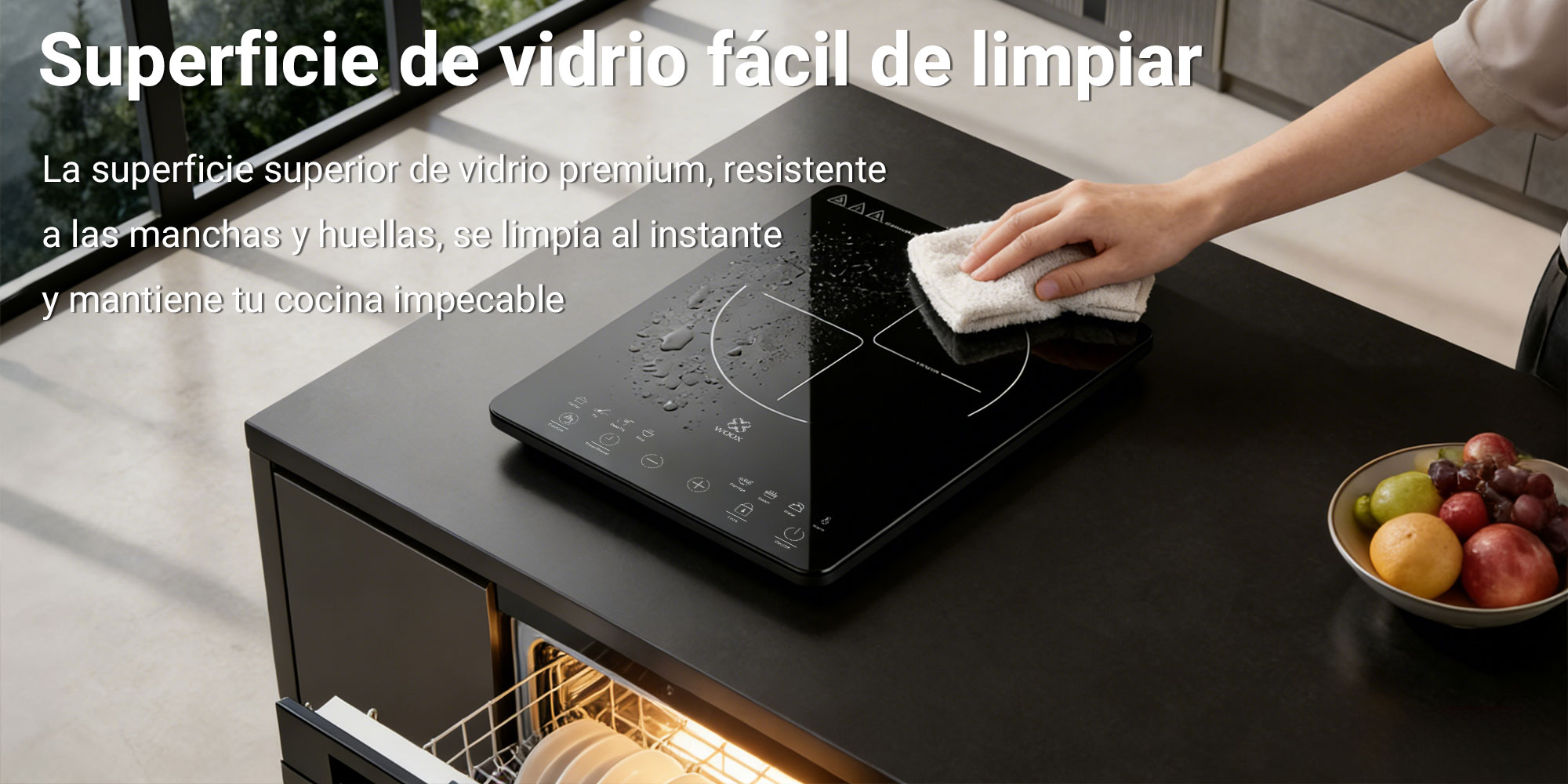 Superficie de vidrio resistente a las manchas que se limpia al instante.
