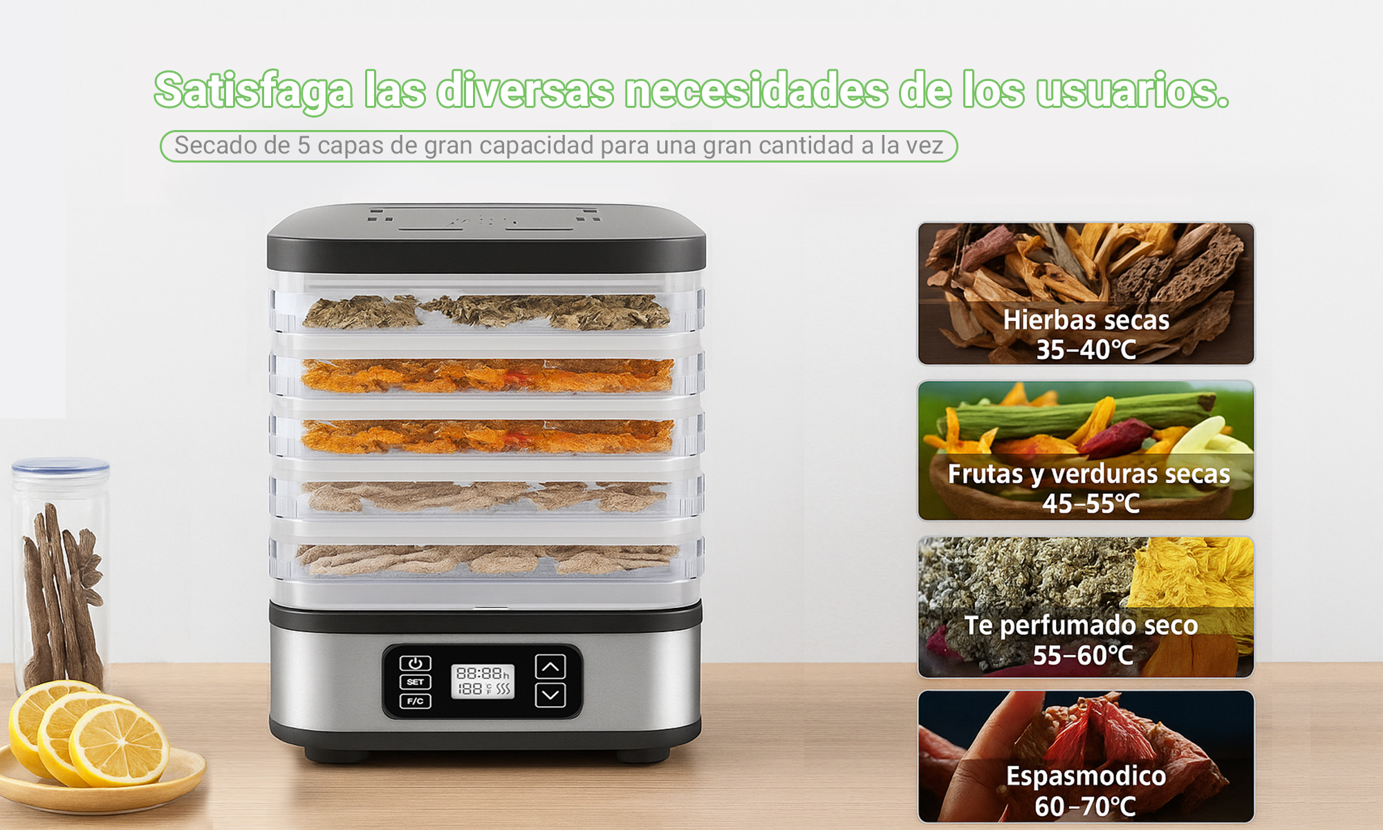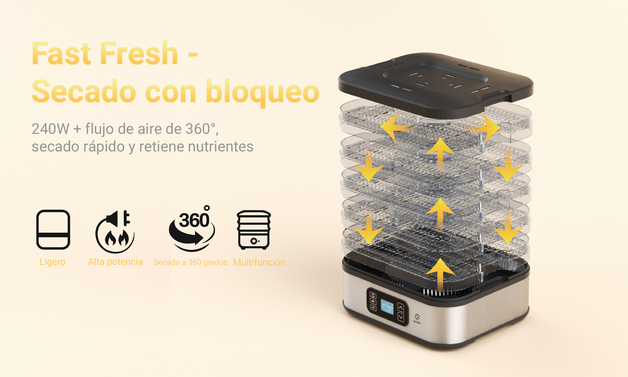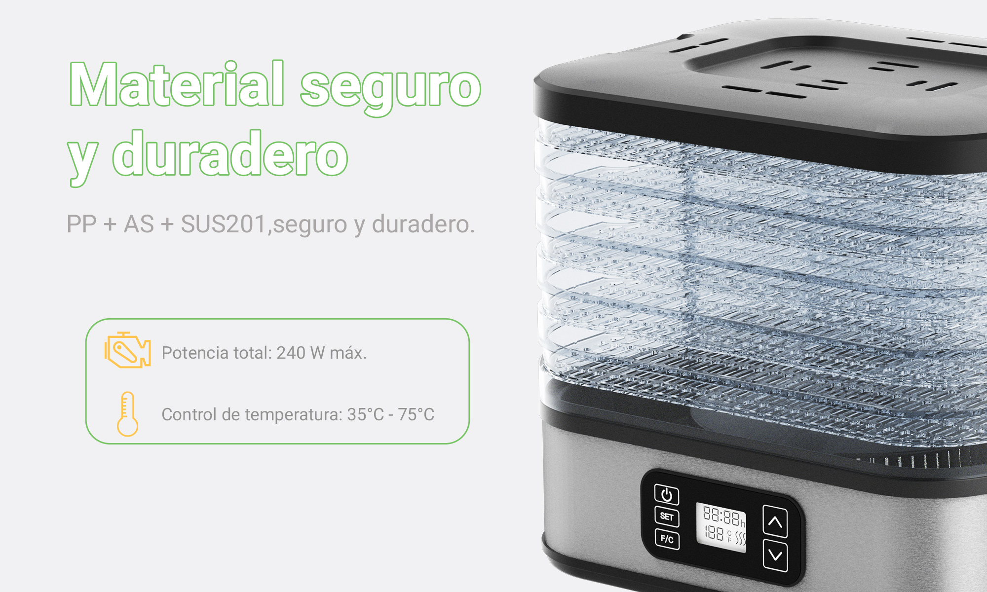 Secador de frutas MX0195 400W 5 capas 270*235*260mm con controlador digital electrónico - negro