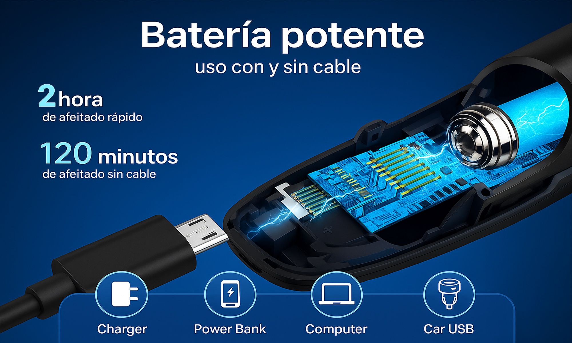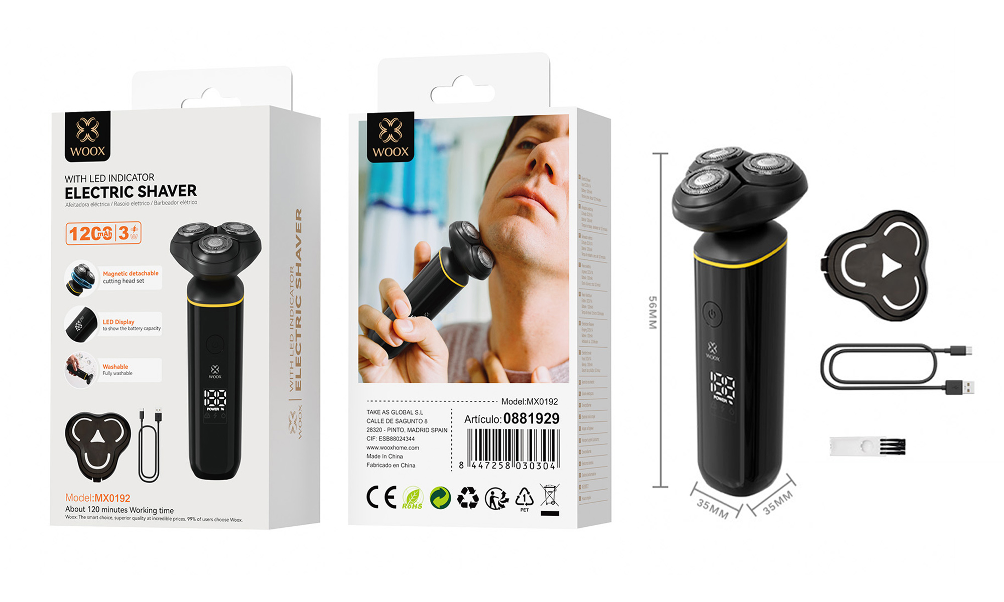 Afeitadora eléctrica MX0192 1200 mAh, carga tipo C con pantalla LED lPX7-gun
