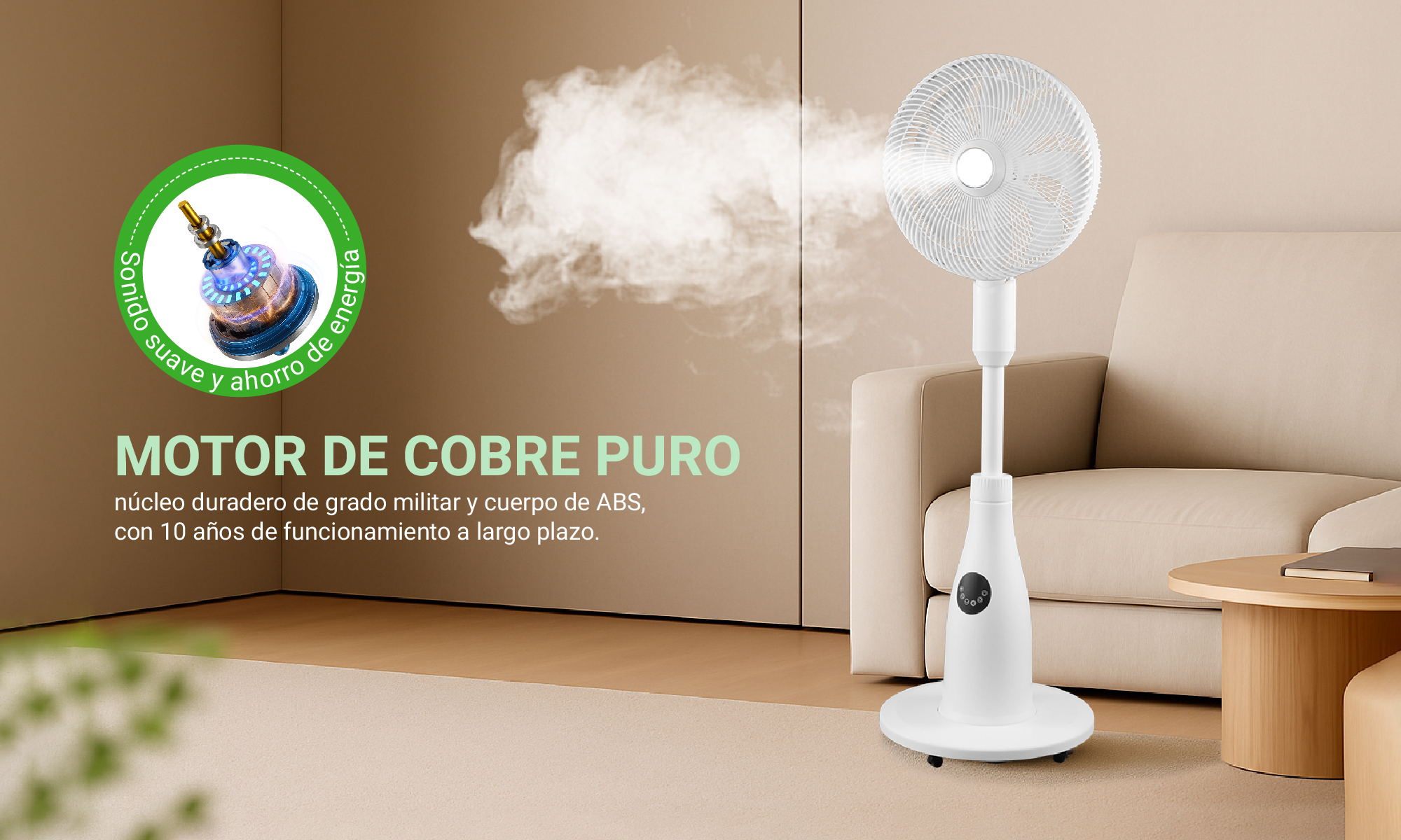 Ventilador de pedestal UE MX0182 80W 7 velocidades de aire con tanque de agua de 2L - Blanco