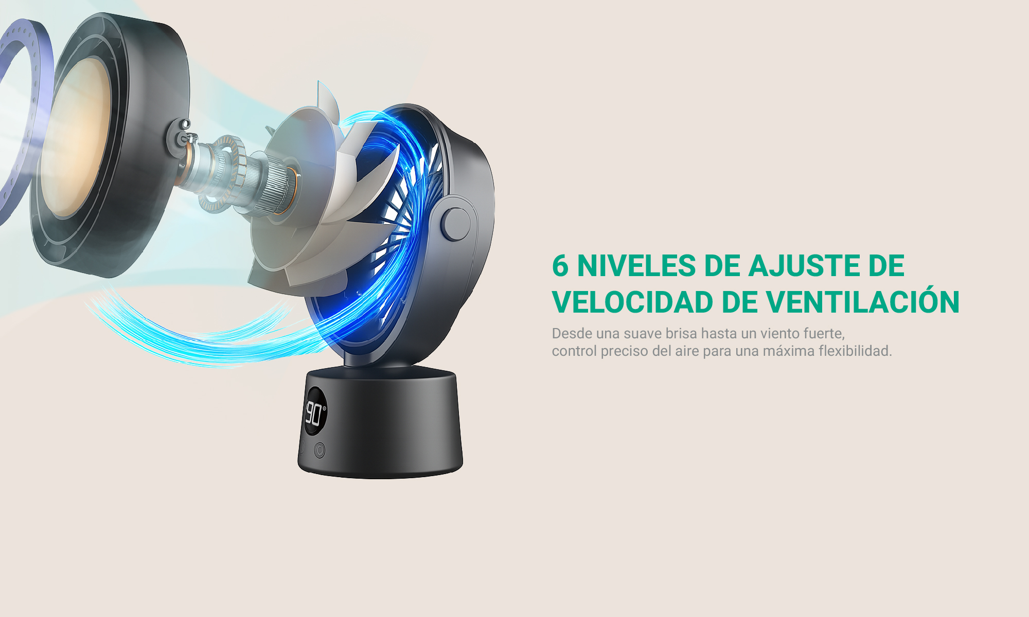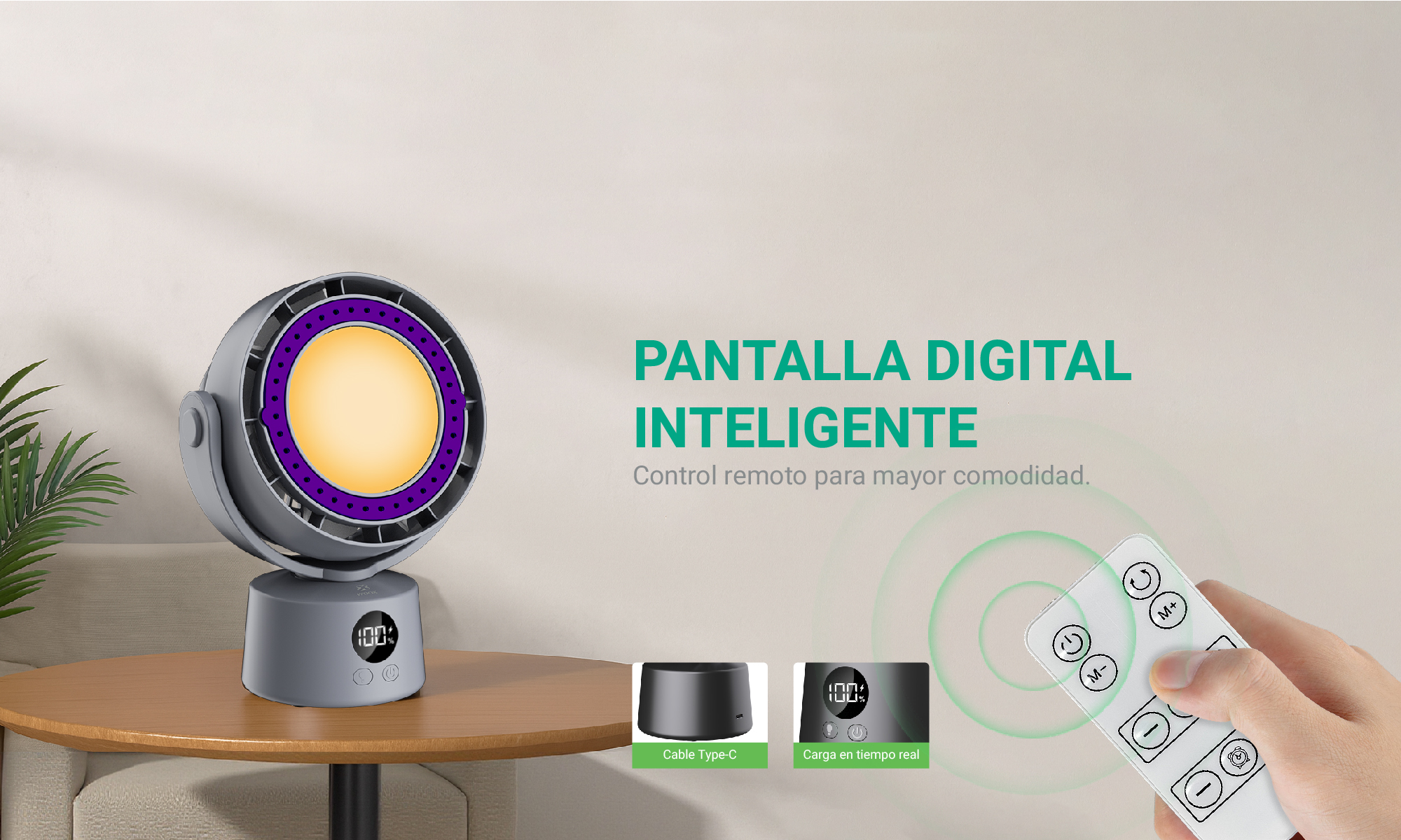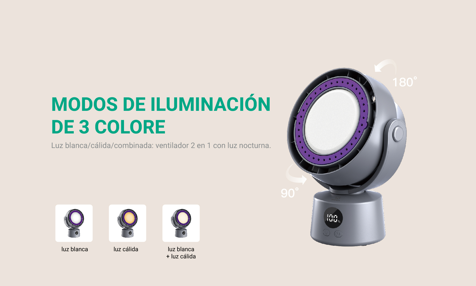 Ventilador de circulación MX0184 3000 mAh, 6 velocidades de viento y 3 modos de luz, gris (SD2163-MX)