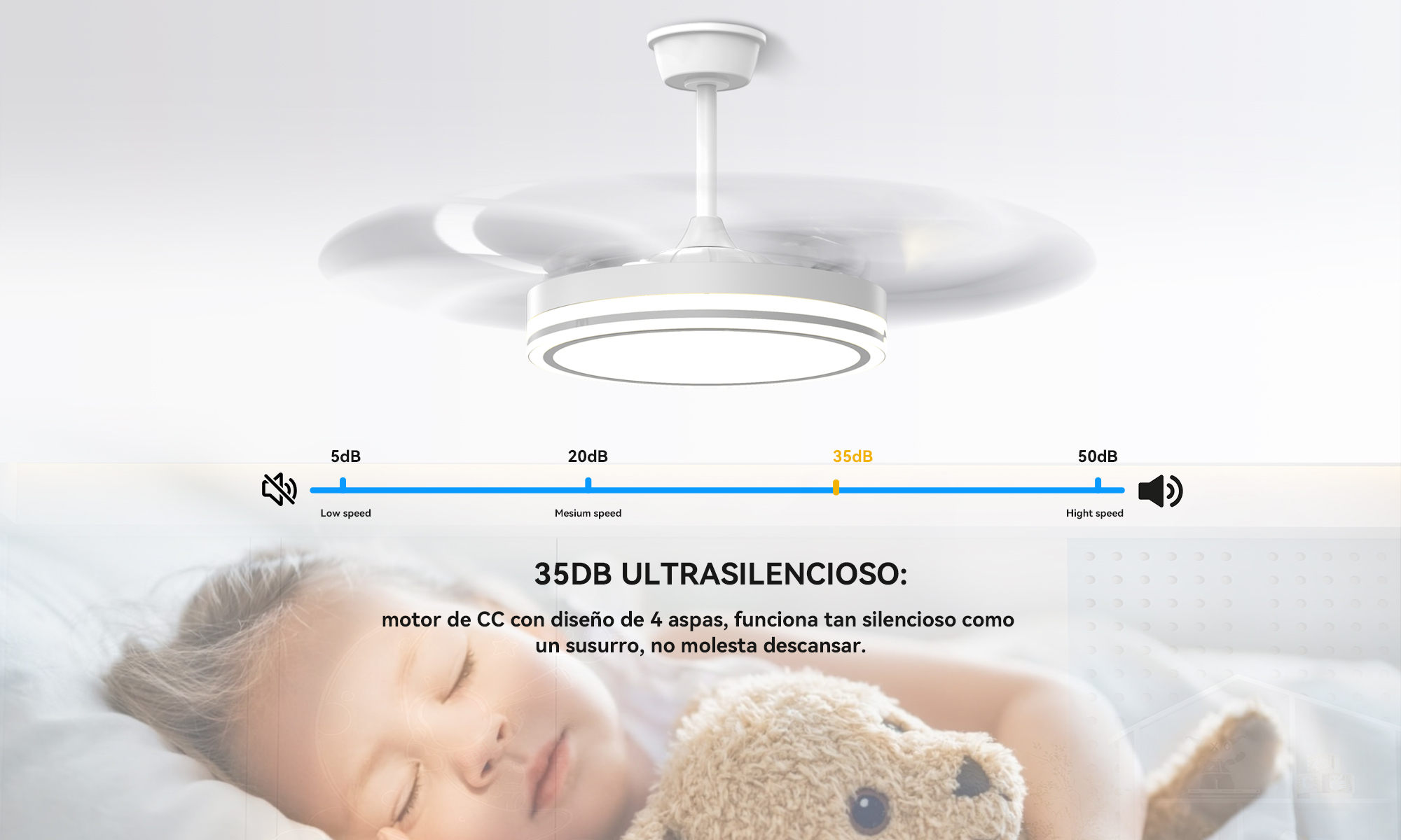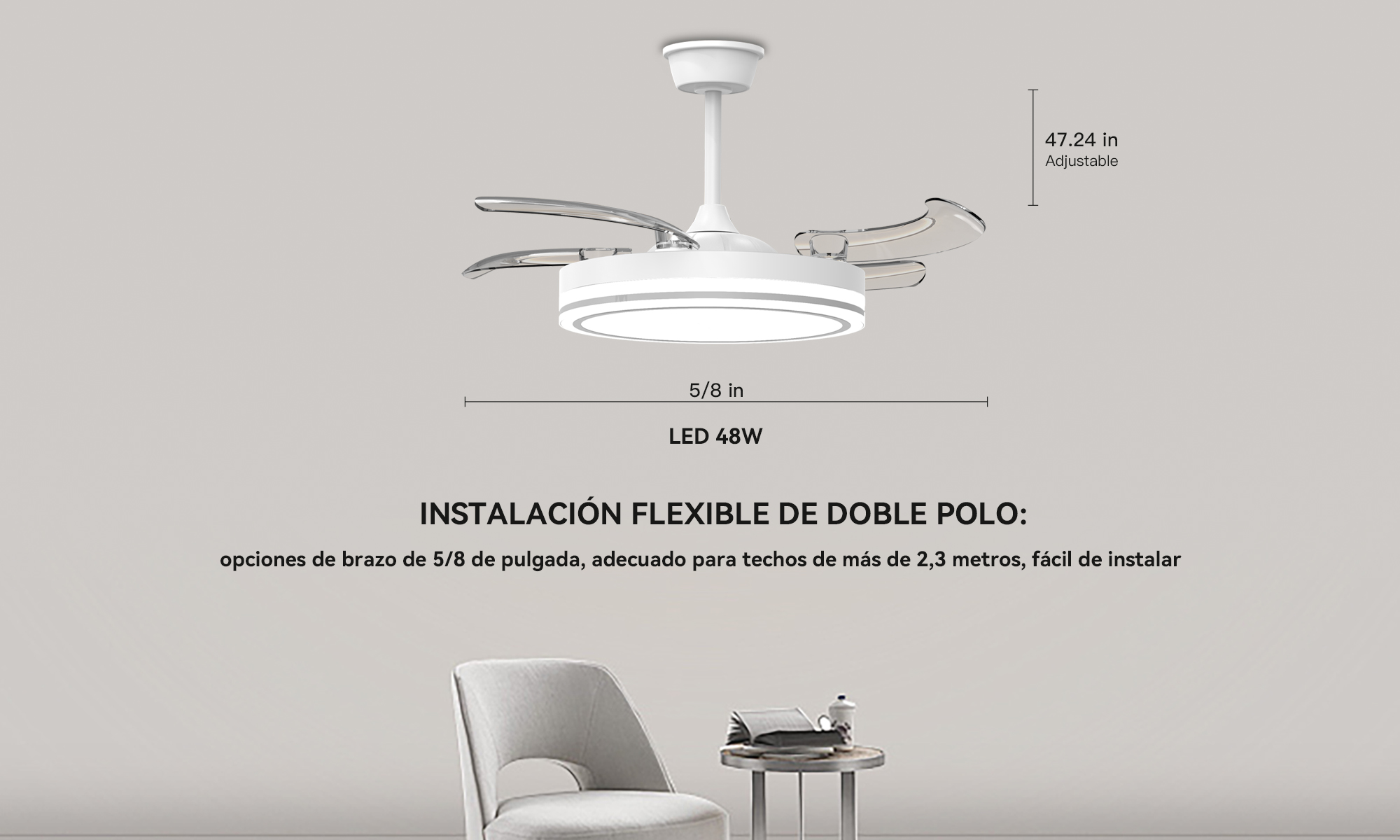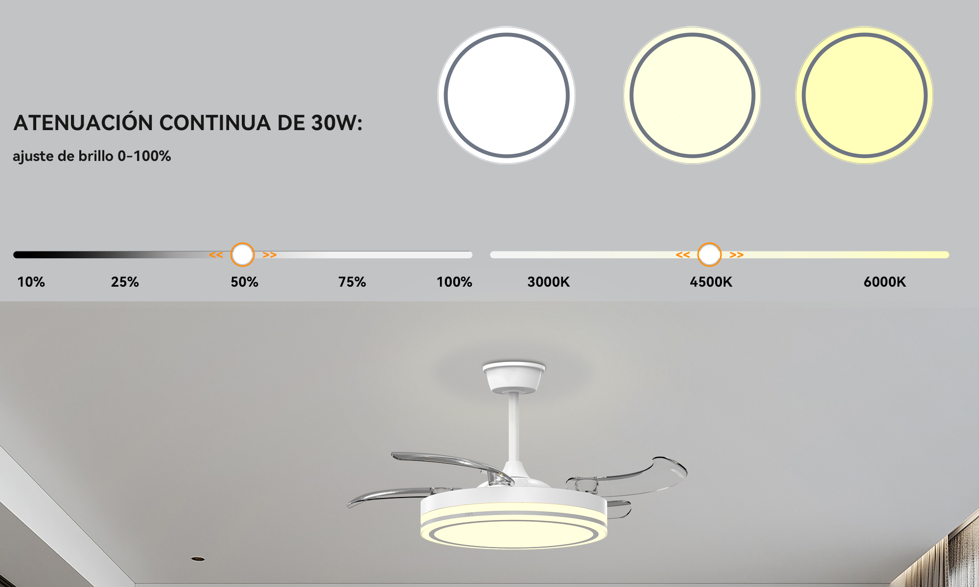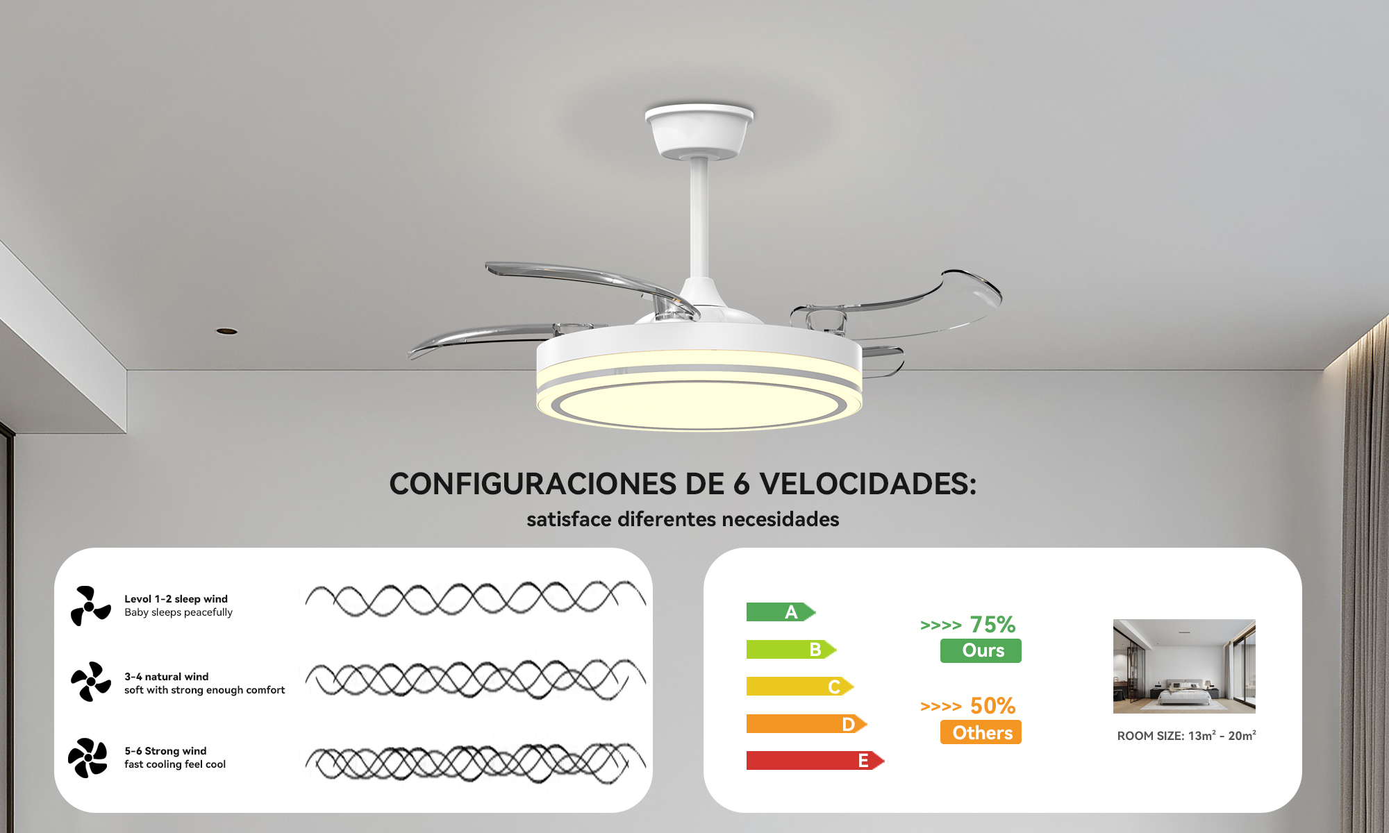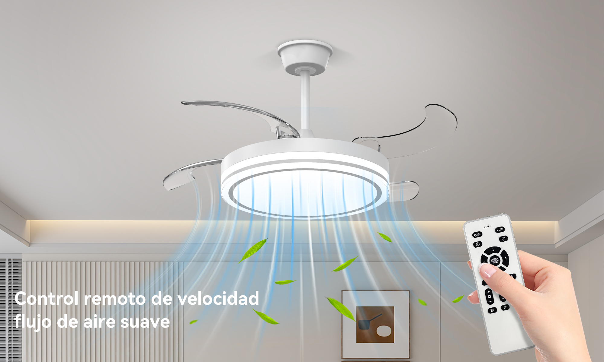 Ventilador de techo retráctil MX0185 de 42", 80 W, 6 velocidades, con LED de 36 W*2, blanco