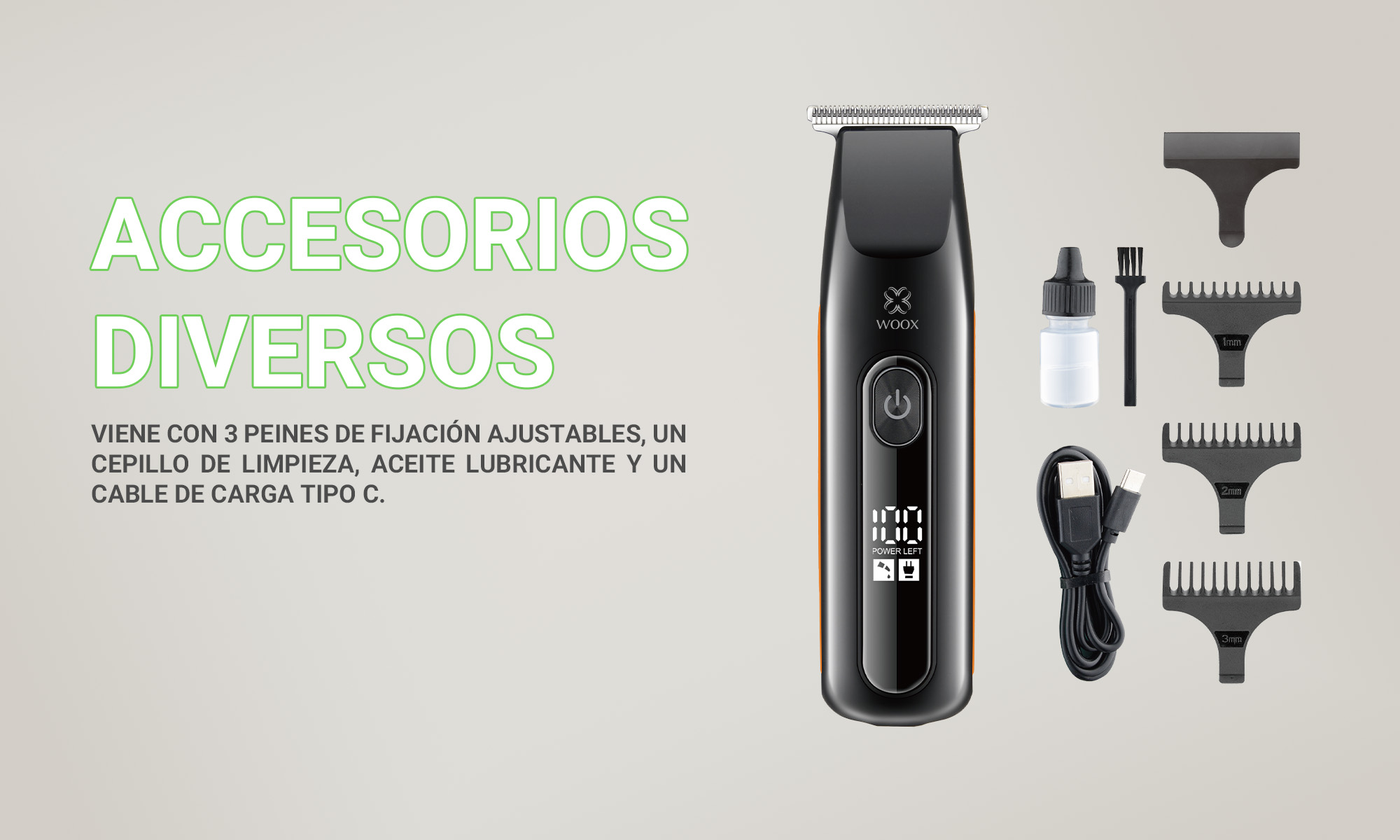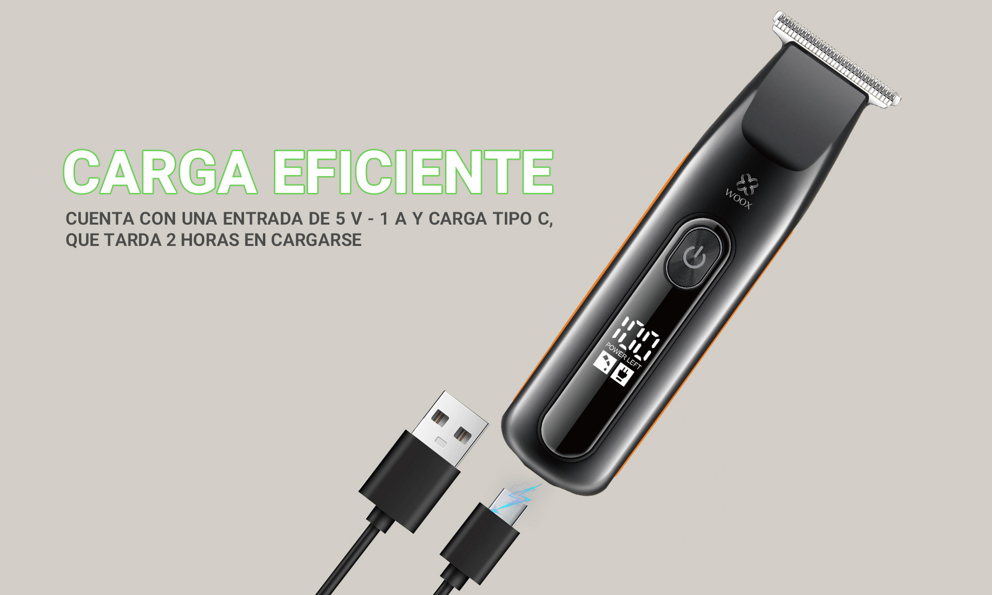 Combo de cortapelos eléctrico MX0238 ABS+PC 600mAh 5V-1A Carga tipo C