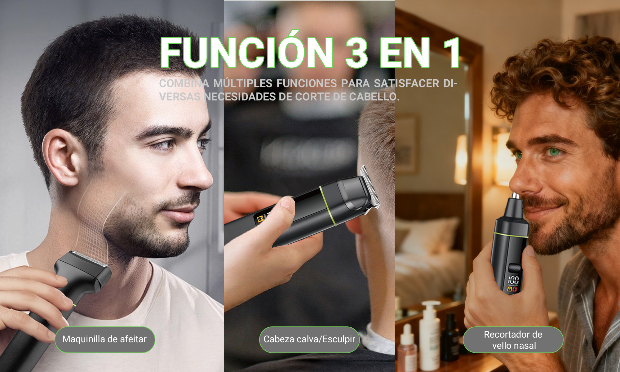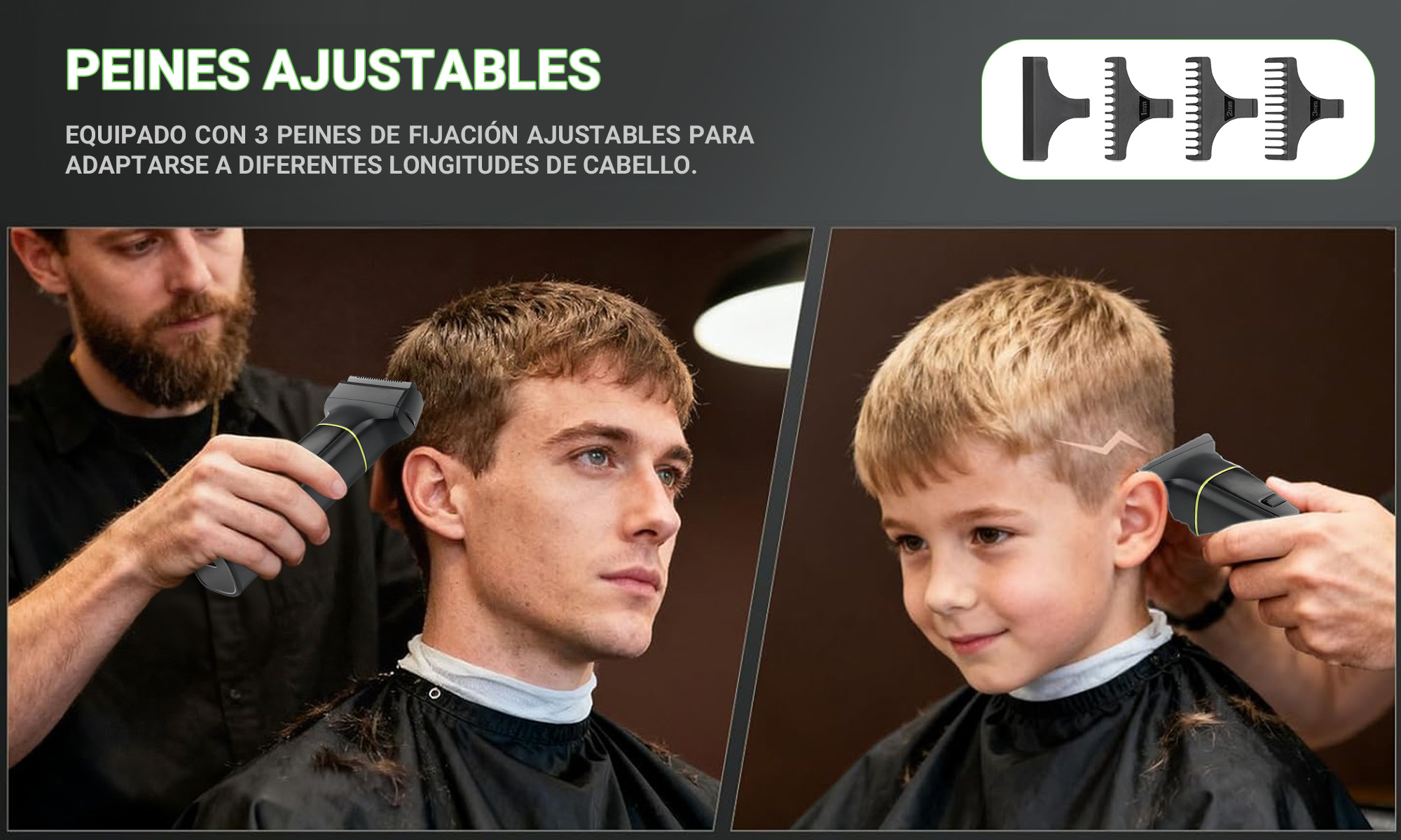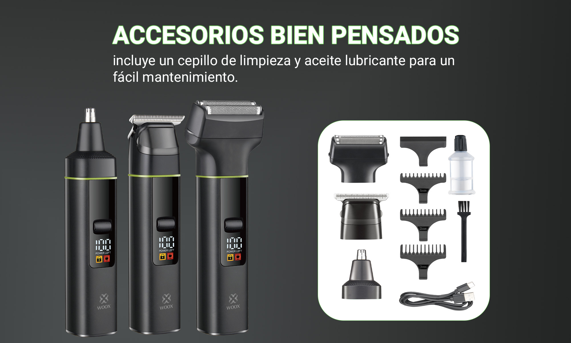 Set de cortapelos eléctrico 3 en 1 MX0239: 3 peines ajustables, aceite lubricante y cepillo