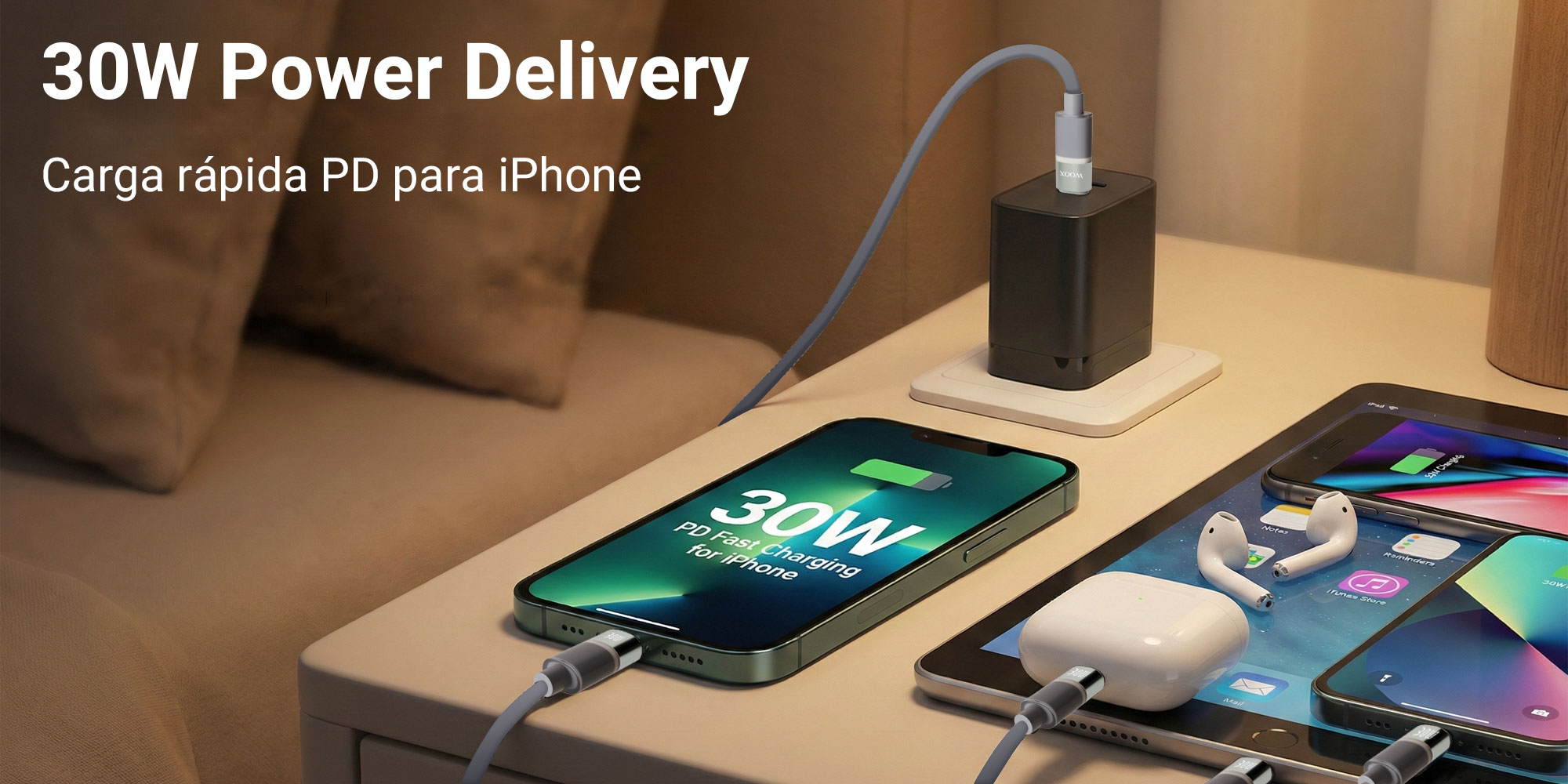 Cable de datos MX0222 Tipo-C a Lightning 30W 1m - marrón