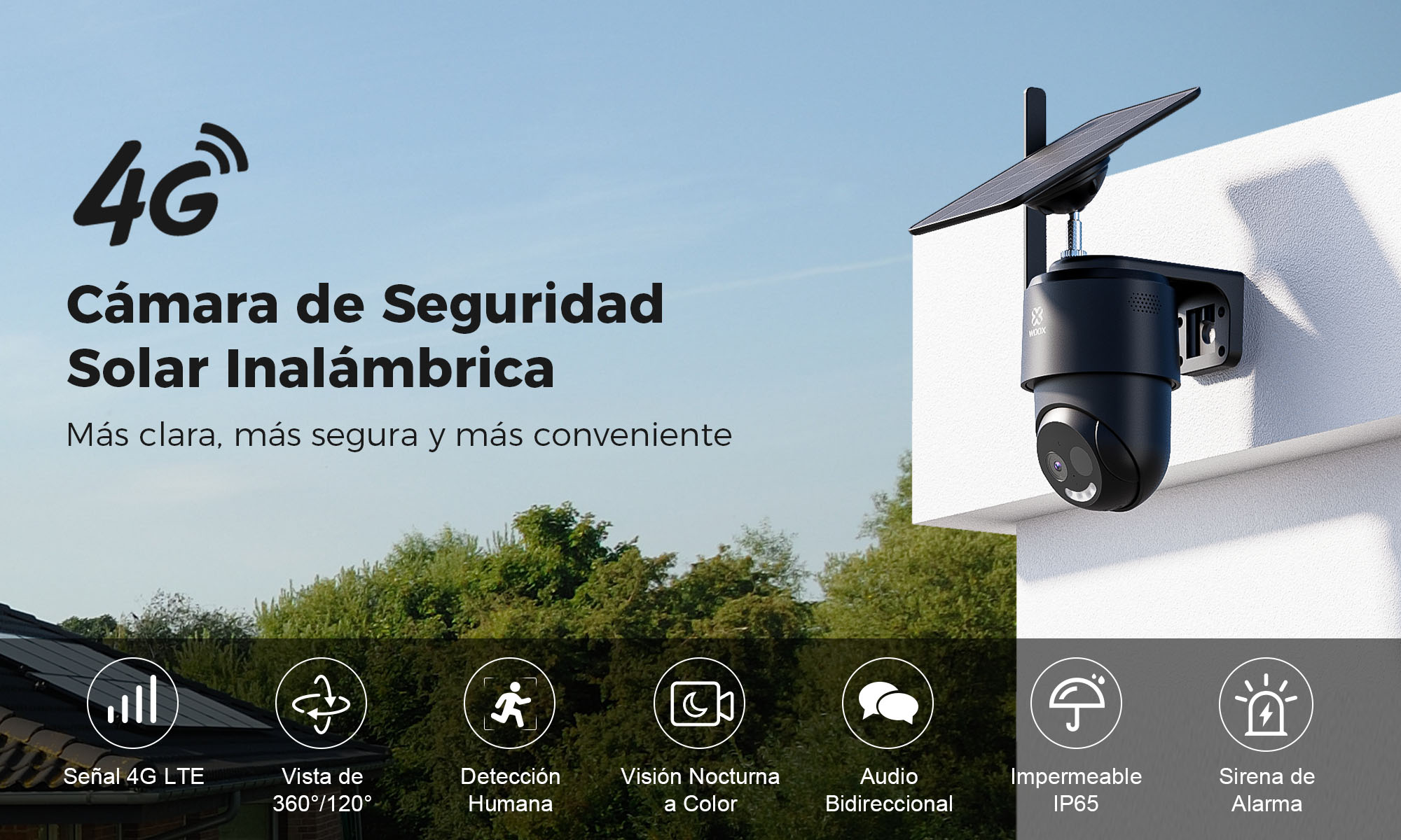 Kit de Cámara PTZ 4G Inteligente al Aire Libre R4250 - Solar+Batería, Rotación 350°/75°, 1080p HD, Antena 4G Externa