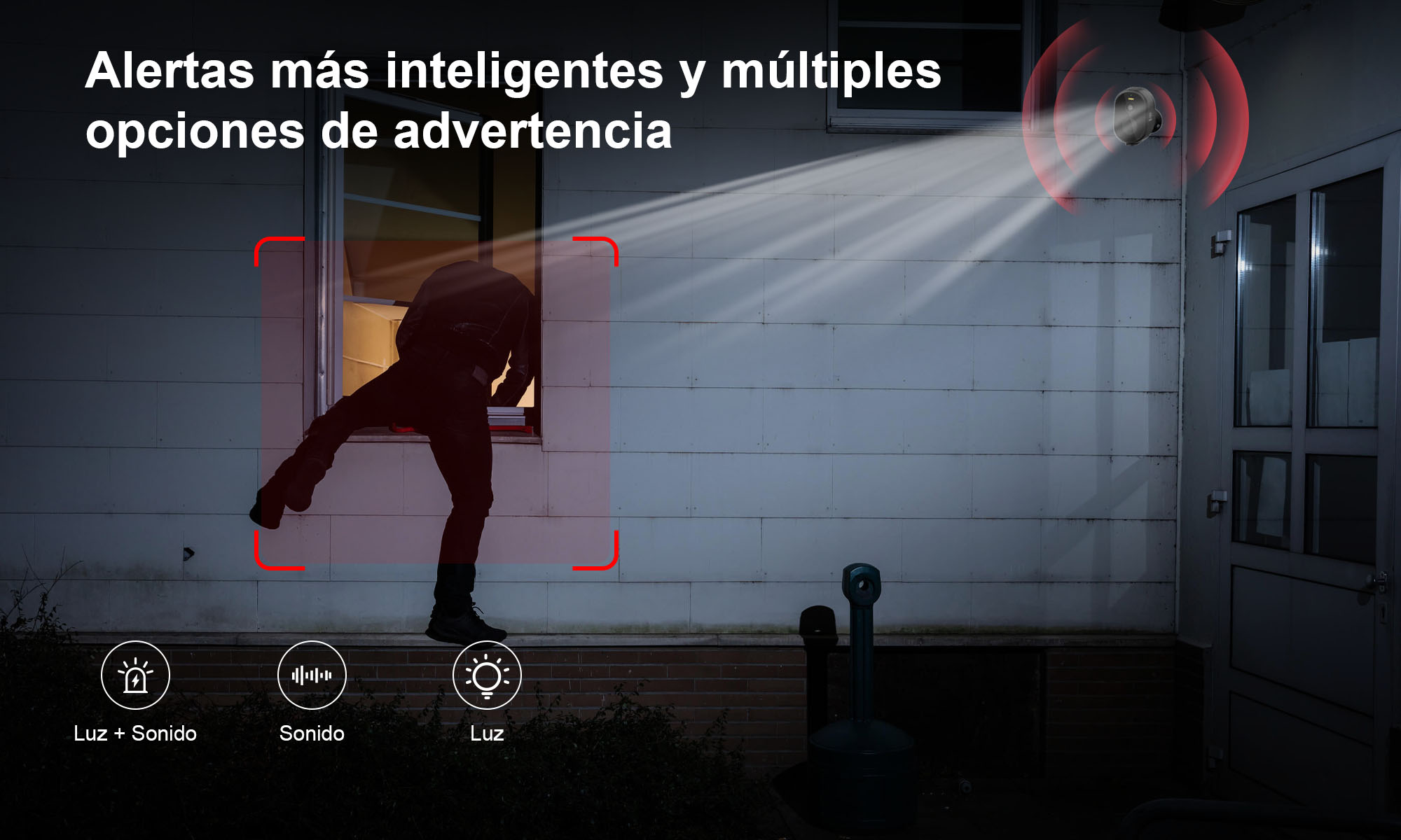 Funciones inteligentes y versátiles: detección de movimiento, filtrado de personas, monitoreo de área, intercomunicador bidireccional y sirena integrada.