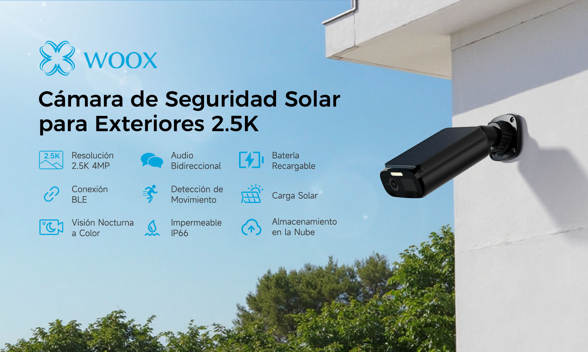 Cámara de Batería Solar Inteligente R8482 - Solar 5W+10400mAh, 4MP UHD+Ángulo Amplio 130°, Impermeable IP66